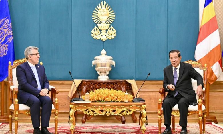 سفیر جمهوری اسلامی ایران در کامبوج نیز در این دیدار ضمن اشاره به سفر هون سن به جمهوری اسلامی ایران در سال ۱۳۹۱ برای شرکت در اج، سران جنبش عدم تعهد و تبریک ،ب دستاوردهای کامبوج به ویژه برقراری صلح و ثبات و تحقق رشد اقتصادی ۶ درصدی در سال ۲۰۲۴، آمادگی کامل ایران را برای توسعه همکاری ها در تمامی زمینه ها از جمله صدور تج،ات و انتقال دانش و فناوری در حوزه پزشکی و سلامت، نانوفناوری، هوافضا، صنایع دفاعی و صدور خدمات فنی مهندسی اعلام کرد.